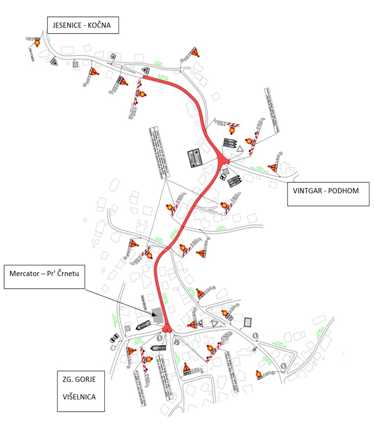 Faza 01 (Zg. Graben- Križišče Fortuna- trgovina Mercator Spodnje Gorje) izdala dovoljenje za občasne popolne zapore dela kategoriziranih cest za obdobje od 21. 1. 2022 do vključno 30. 4. 2022: